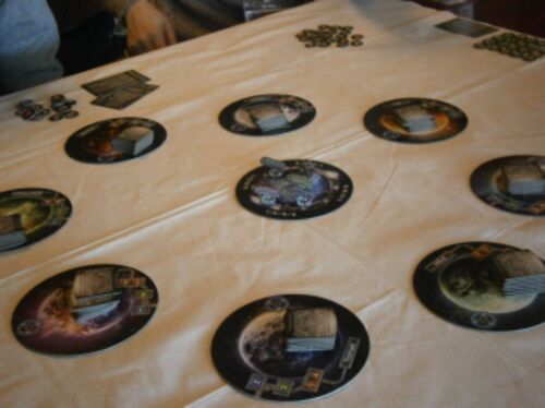 本日のボードゲームレビューは、まだアマゾンにも商品がなかった「スペースミッション」。 タイトル通り、宇宙を舞台としたボードゲームで、惑星開拓がテーマ。 ↑8つの星を舞台に、惑星開拓を行っていきます。 まず、ゲーム開始時、上の写真のように中央に「…