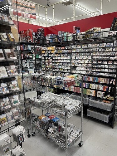 ゲームコーナー…のうちのレトロゲームコーナー。めちゃ広い店内に対して、ここの棚間が妙に狭くて、なんかめっちゃこじんまりしているように感じます。